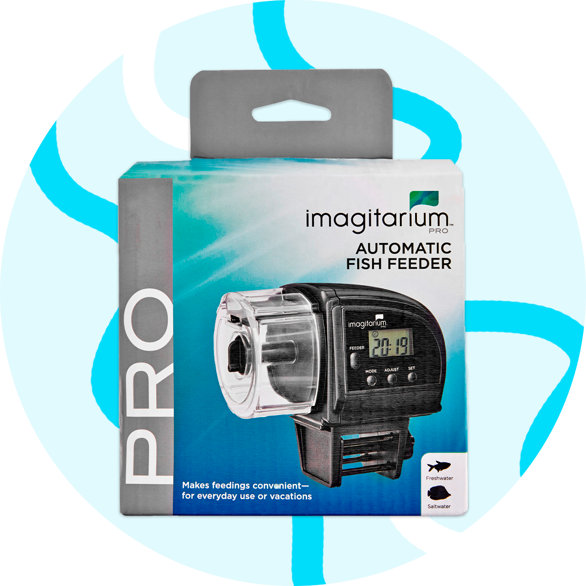 Este alimentador PRO, dispensa hojuelas o comida granulada a tus peces. Se puede programar para cuatro comidas en 24 horas y con porciones ajustables. Garantiza alimentar a los peces de forma segura, precisa y sencilla mientras estas fuera de casa en periodos vacacionales o diariamente.
